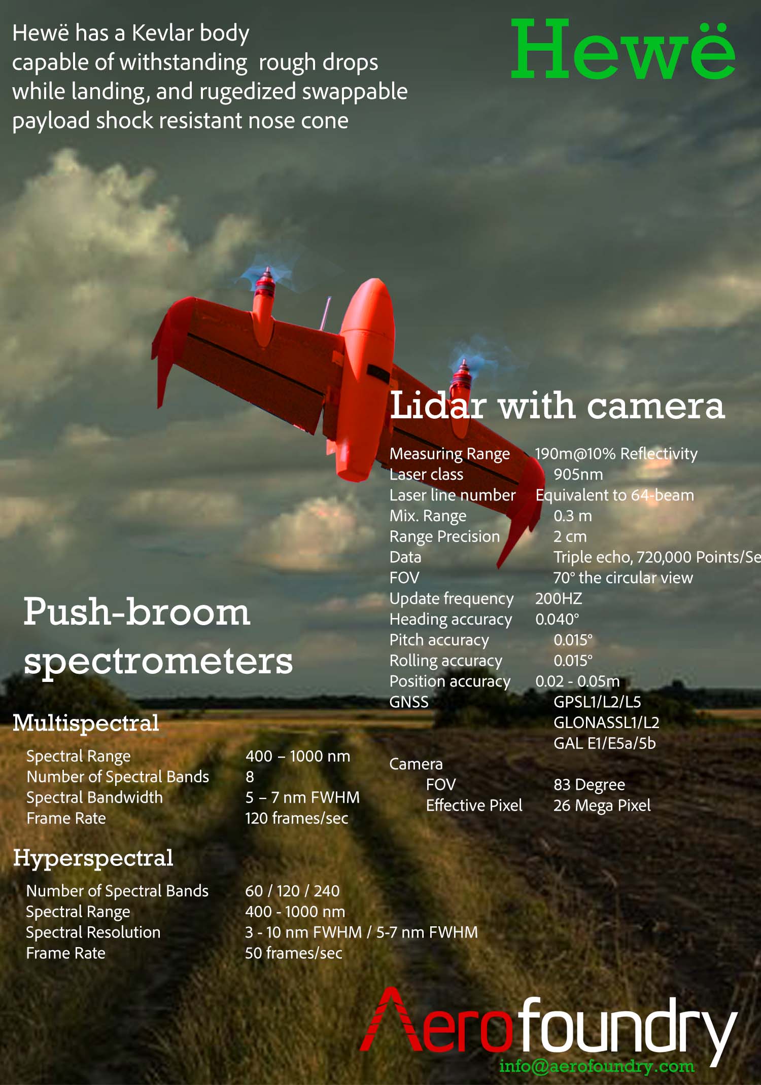 Hëwe is a new back-pack portable tailsitter with a 1-hour endurance, EO/LWIR gimbal, laser ranging and tracking of moving targets from a handheld touchscreen GCS.
